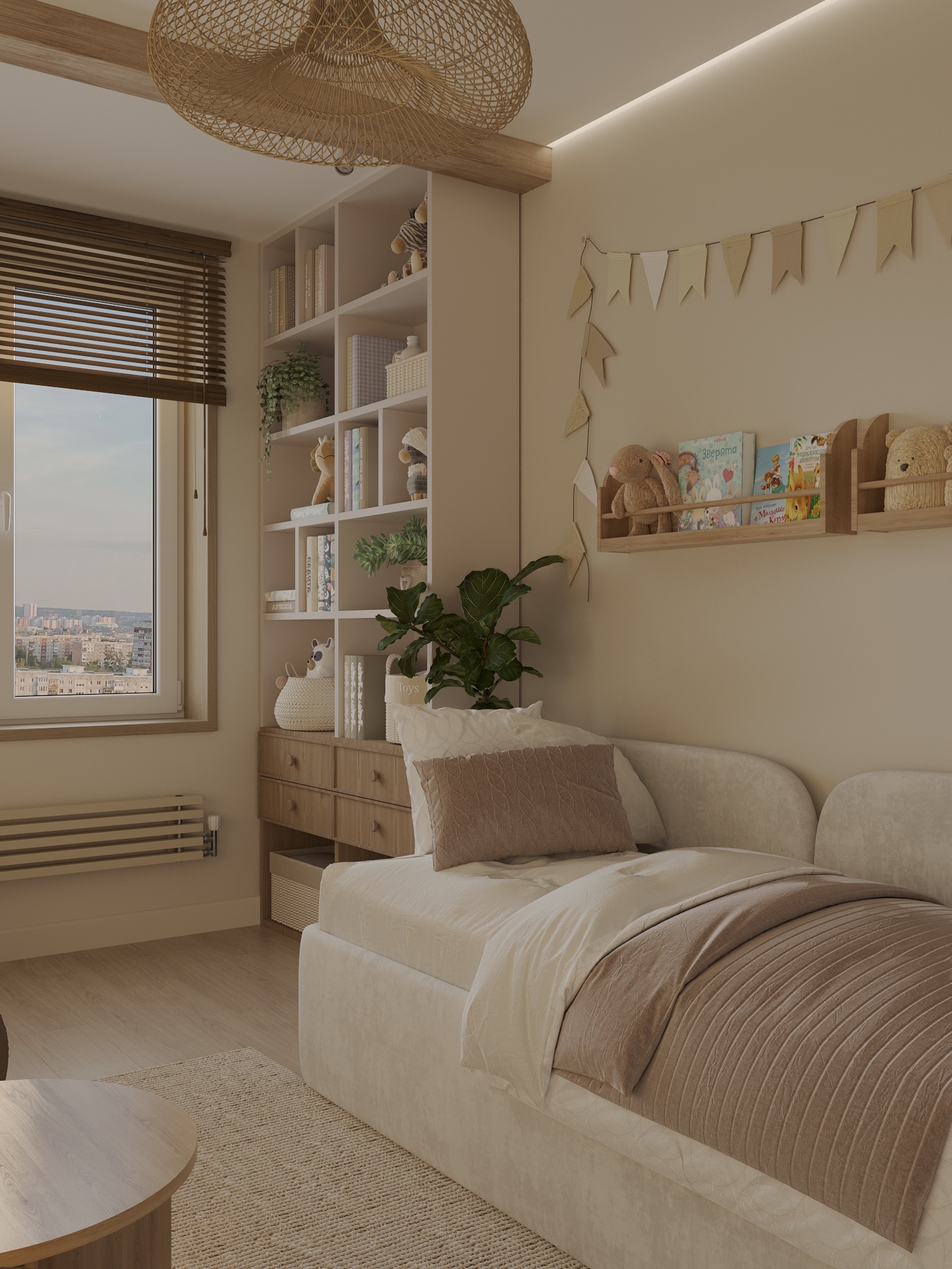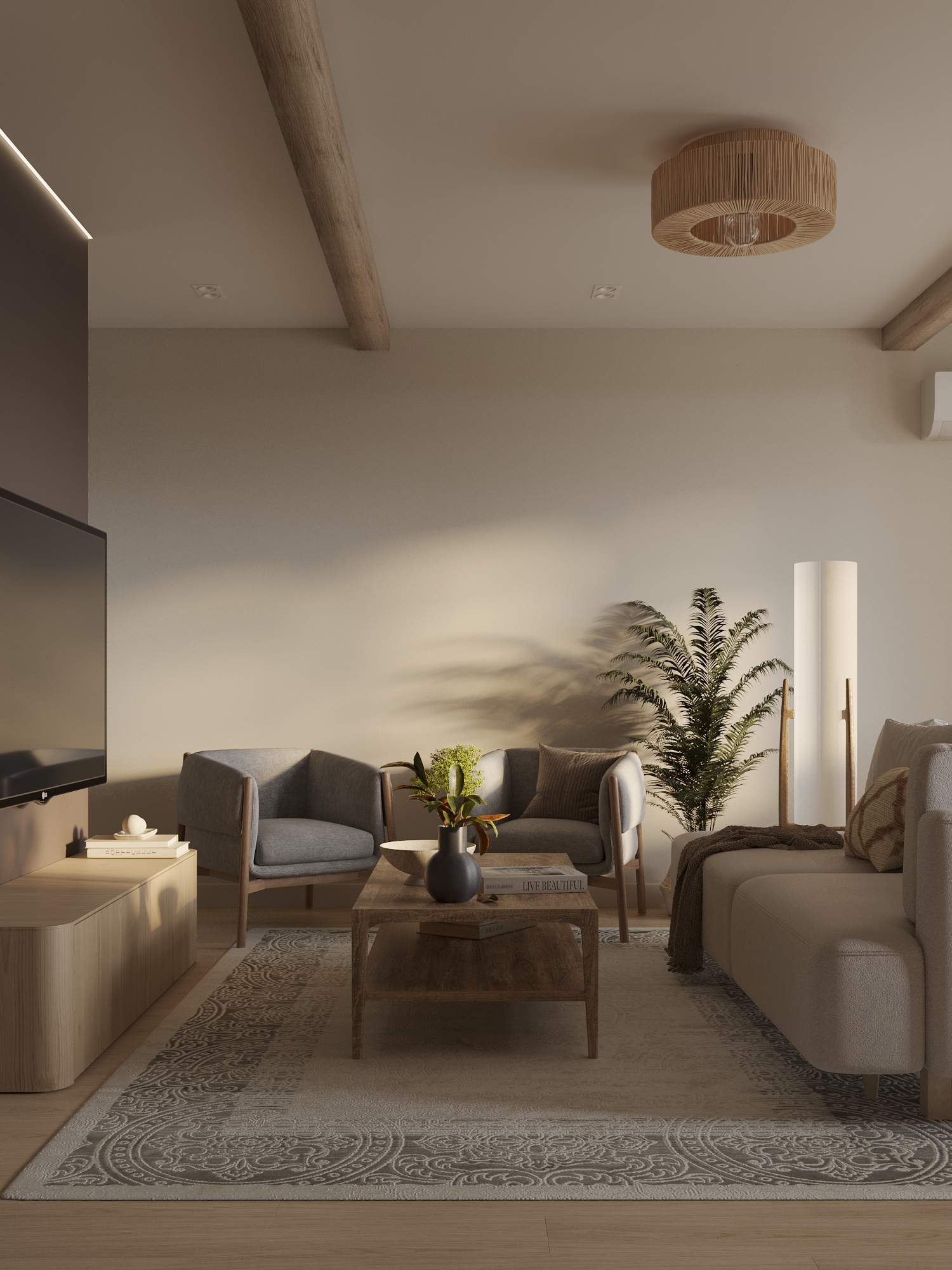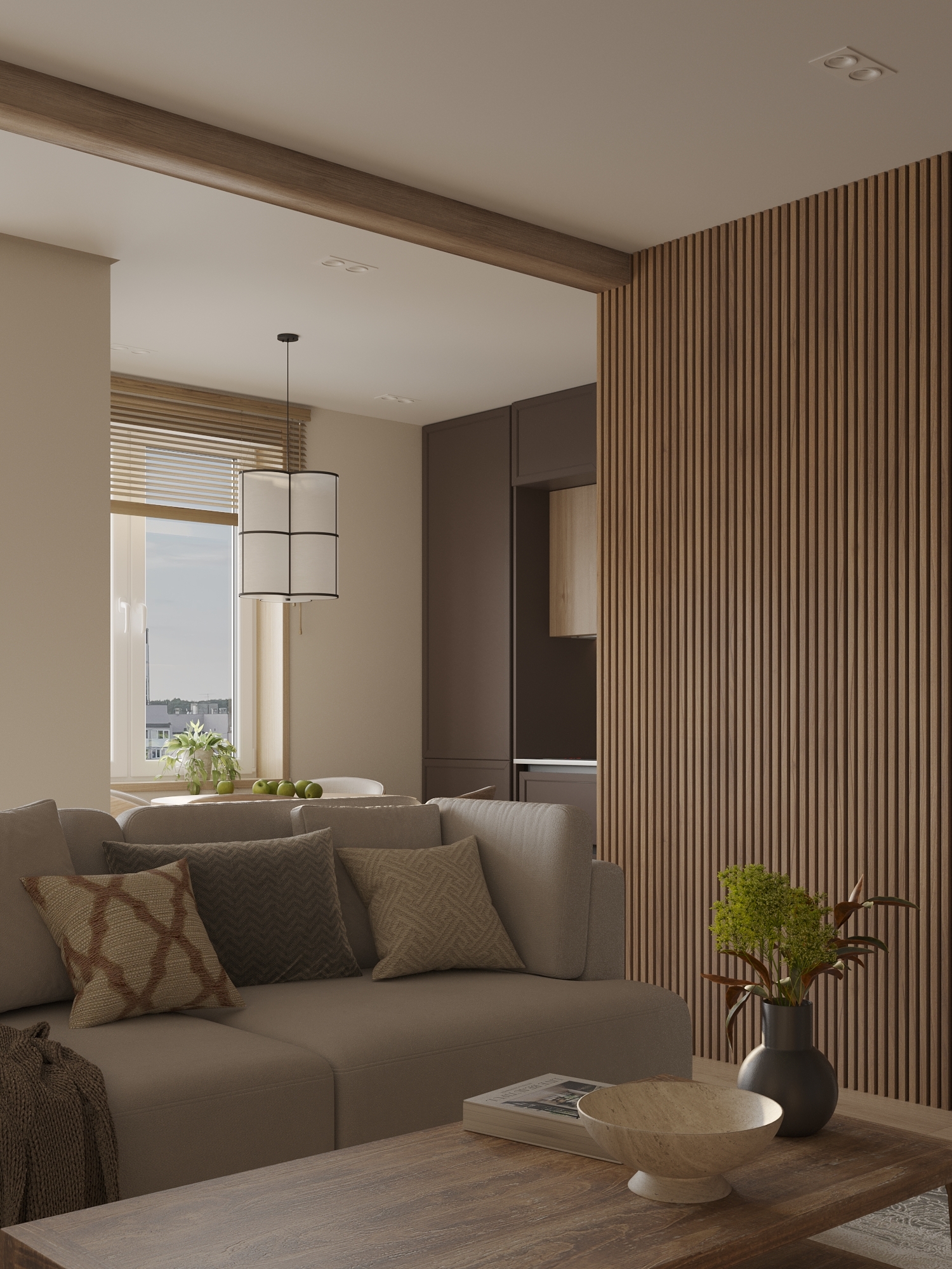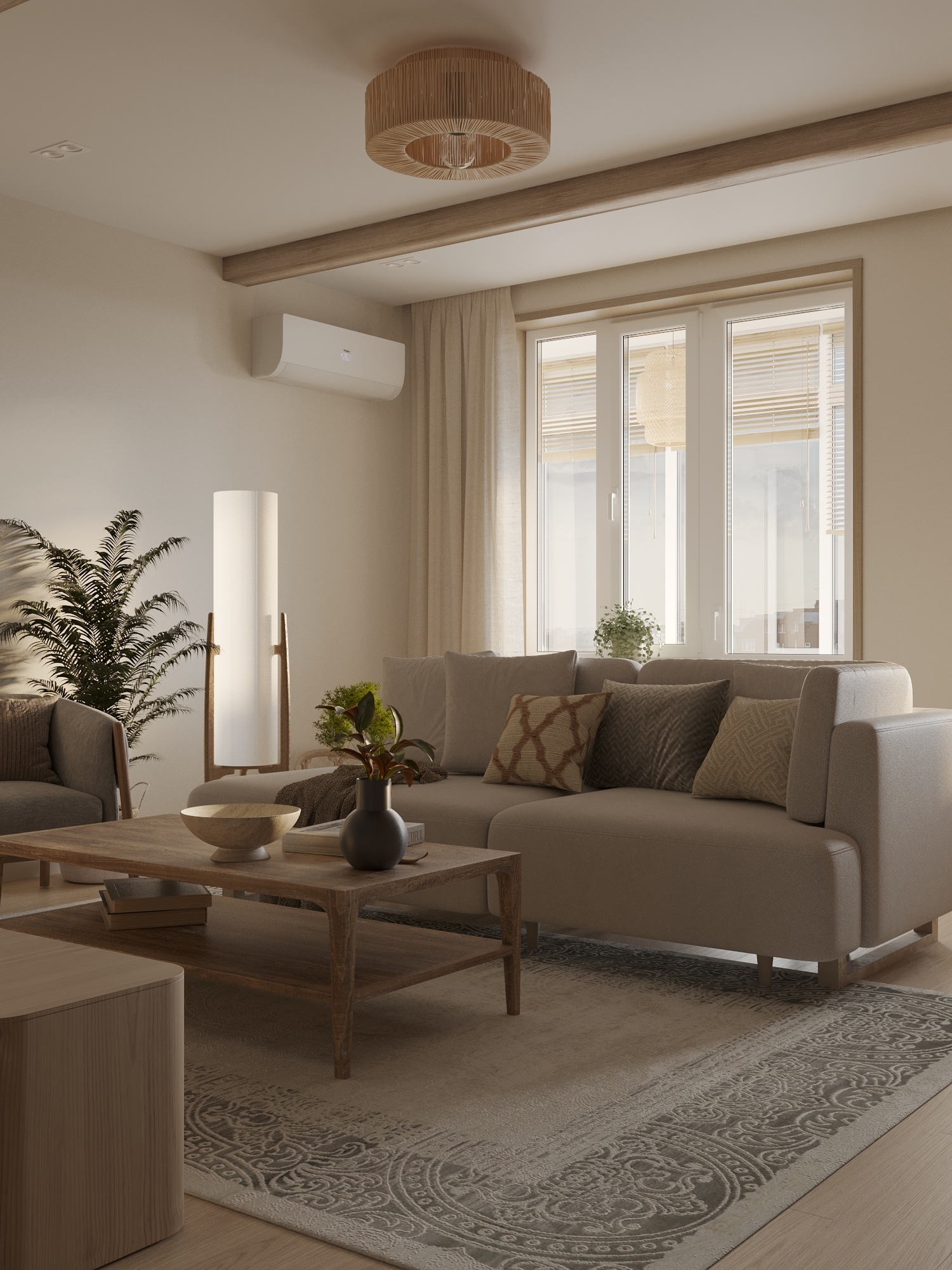 Дизайн квартиры для молодой семьи в стиле джапанди.